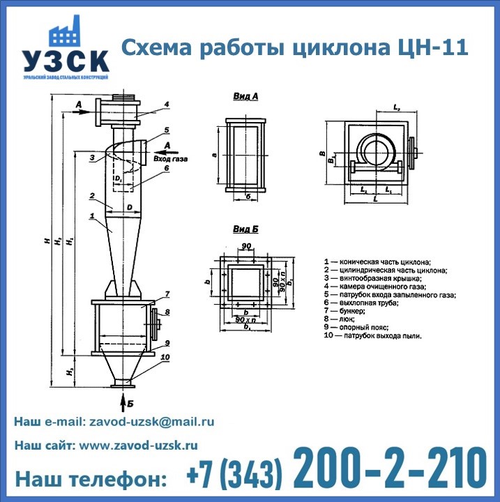 При этом ощутимой разницы в цене между универсальным и узконаправленным, подобранным в соответствии с конкретными техническими требованиями циклоном, нет. Стоимость воздухоочистительного оборудования типа циклон обусловлена маркой и толщиной стали, из которого он изготовлен, сложностью и специфичностью конструкции, наличием дополнительного оснащения (бункер, улитка и другие). При необходимости, на заводе УЗСК в Братске будет изготовлен циклон по индивидуальным техническим чертежам заказчика.