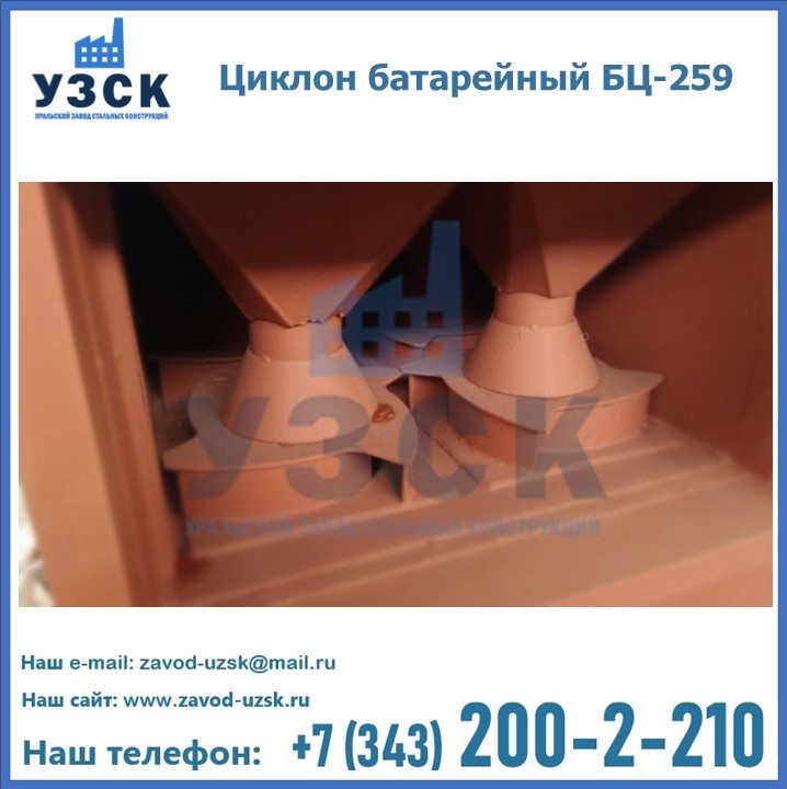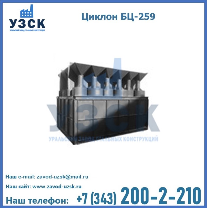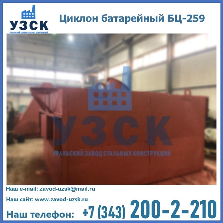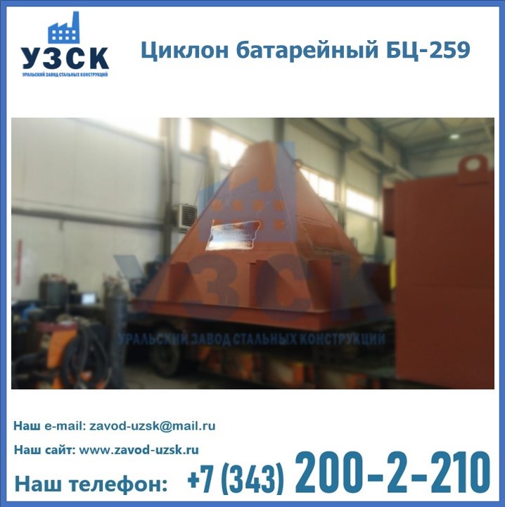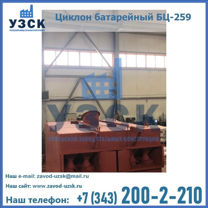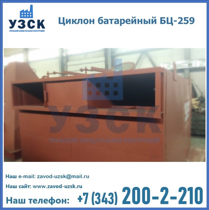 Приобрести качественное оборудование, в том числе, циклоны БЦ-259, можно в компании УЗСК в Братске. Мы предлагаем долговечную и надежную продукцию по приемлемой цене. Заказать и купить циклоны или другие изделия высокого качества можно через сайт Уральского Завода Стальных Конструкций, или позвонив по указанному в разделе «Контакты» телефону.
