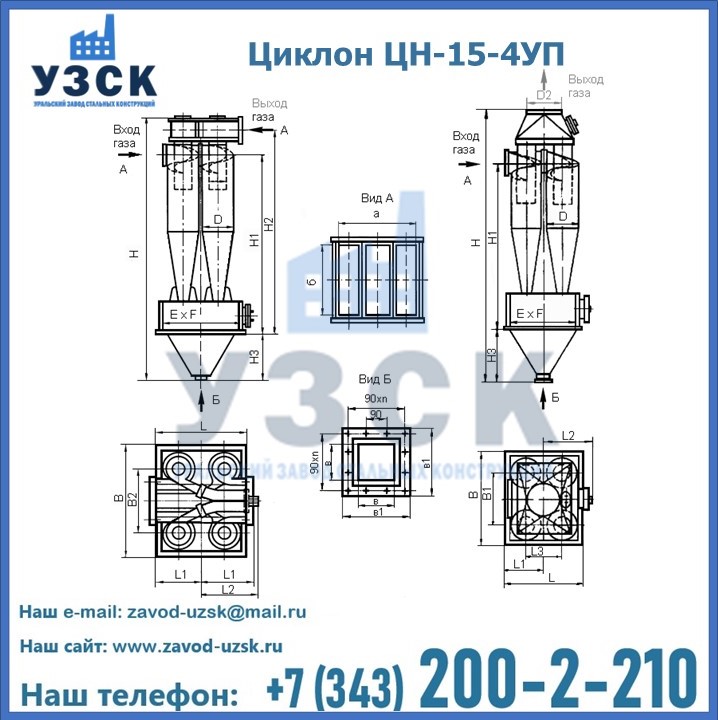 Завод «УЗСК» в Братске предлагает большой выбор циклонов ЦН-15-500×4УП и прочих устройств, полностью укомплектованных и готовых к эксплуатации. Мы гарантируем соответствие оборудования всем требованиям ГОСТ и ТУ, износостойкость и высокую производительность предлагаемого оборудования. Уральский Завод Стальных Конструкций изготавливает и продает надежное, эффективное и производительное оборудование, имеющее длительную гарантию и большой эксплуатационный ресурс. Если требуется изготовить циклон нестандартных размеров, то такой вариант выполнения заказа тоже предусмотрен, так как предприятие имеет собственные производственные площади и надежных поставщиков. На все поставляемое или производимое оборудование имеются чертежи и прочая техническая документация. Заказать и купить циклоны или прочее оборудование высокого качества и по доступной цене можно через наш сайт или по указанному в разделе «Контакты» телефону.