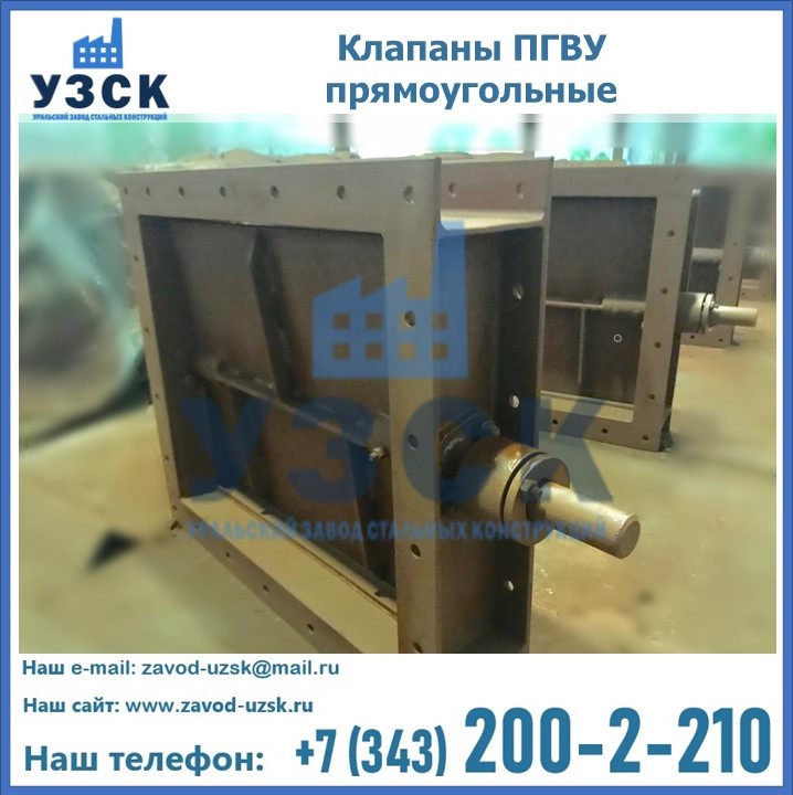 Прямоугольный клапан ПГВУ имеет прямоугольную или квадратную форму, по основному сечению конструкции, на которую устанавливается клапан. Для изготовления шиберов ПГВУ в Братске применяются сталь нержавеющая, углеродистая или низколегированная, в зависимости от модели. Внутри клапана имеется запорный элемент, передвигающийся параллельно общему потоку движения среды. Запорный элемент, или створка имеет такую же форму, как и основное сечение. Перемещение створки происходит благодаря возвратно-поступательным движениям.