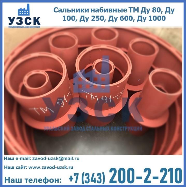 На производственных площадях Уральского Завода Стальных Конструкций в Братске профессиональные сотрудники занимаются проектированием и разработкой различных закладных деталей, в частности осуществляется производство и реализация набивных и нажимных сальников. Все изделия, которые можно приобрести у нас, отвечают установленным требованиям по ГОСТу, а также прочей нормативной документации.